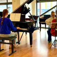 In de lessen van Mieke de Jong komt samenspel veel aan bod, ook voor ensembles met 3 of meer spelers. Het blijkt echter lastig om voor de beginnende pianist geschikt kamermuziekrepertoire te vinden. Vaak worden eenvoudige melodiepartijen gecombineerd met te moeilijke pianobegeleidingen waardoor de stukken niet bruikbaar zijn voor de pianoles. Mieke is met collega Hetty Floors in deze materie gedoken en op zoek gegaan naar samenspelrepertoire met eenvoudige pianopartijen.